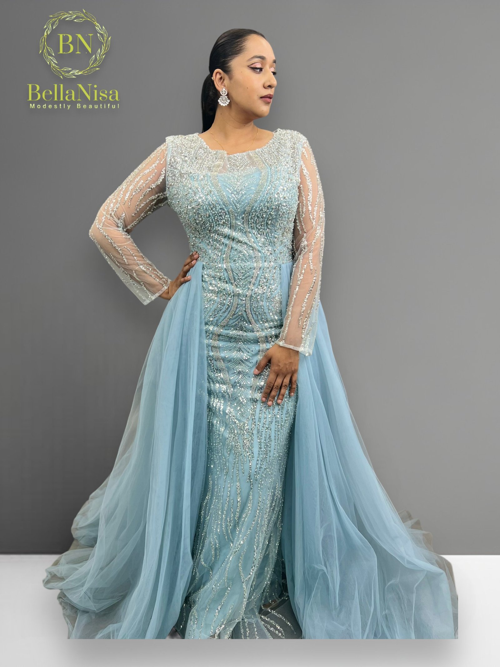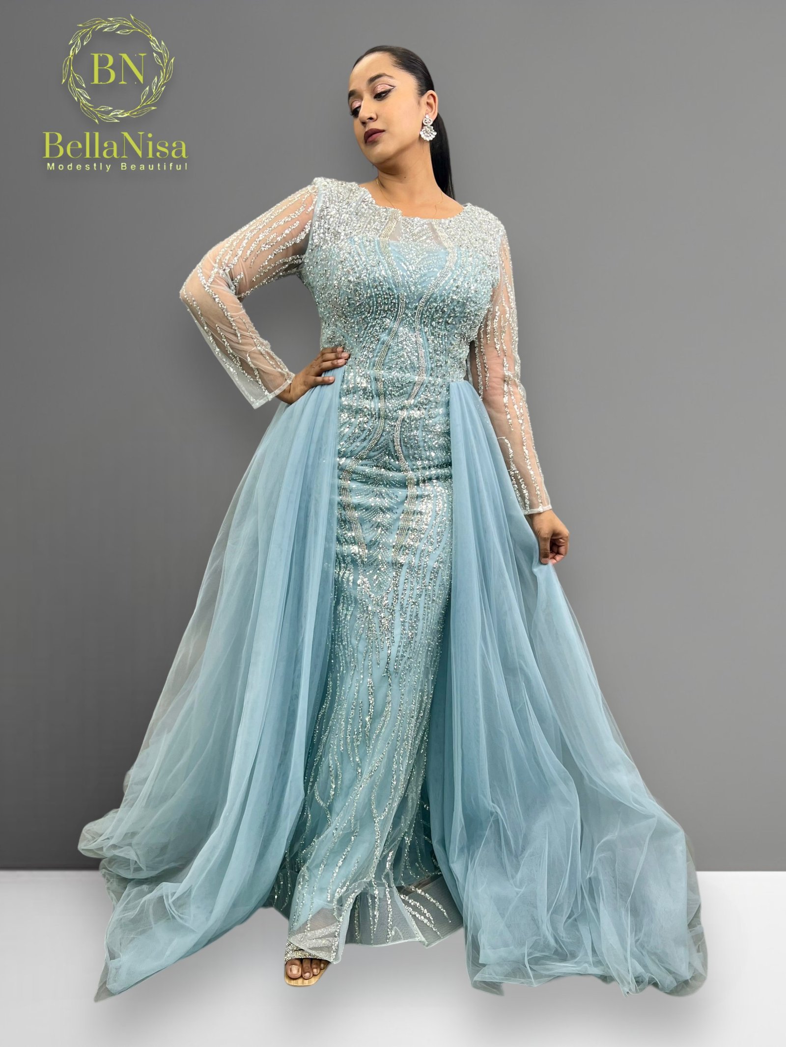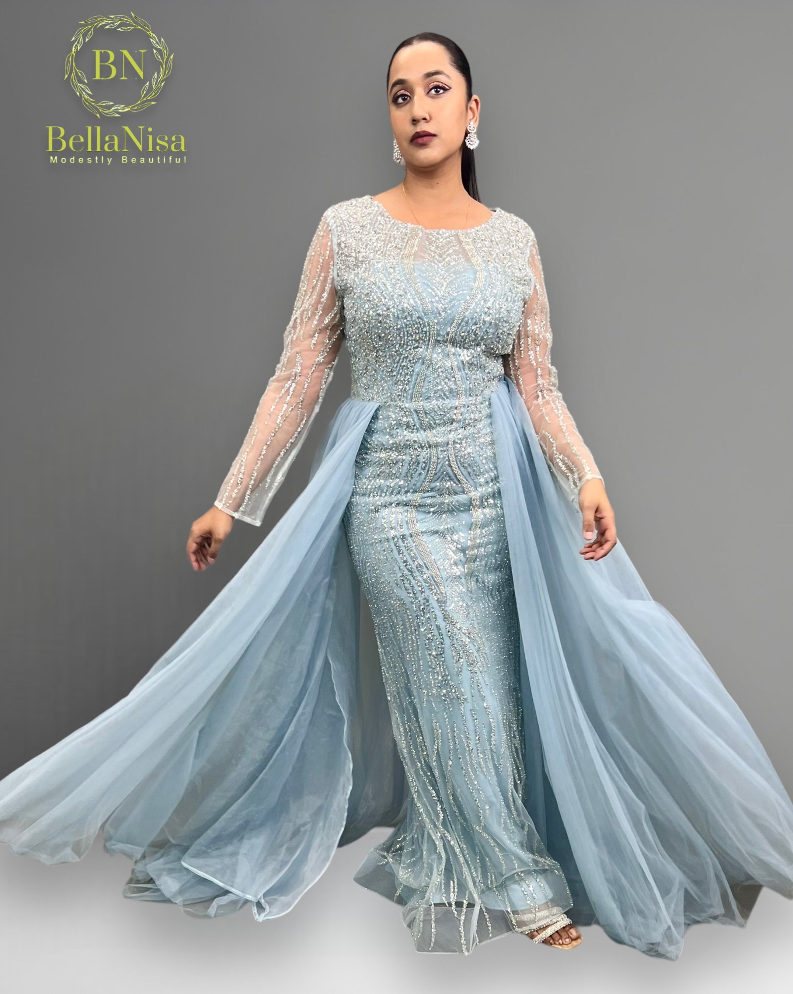 Capture the elegance of a beautiful baby blue gown with this perfect gown! It is fully beaded to mesmerize your audience.