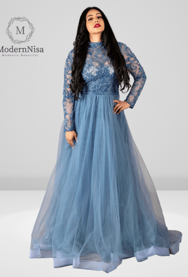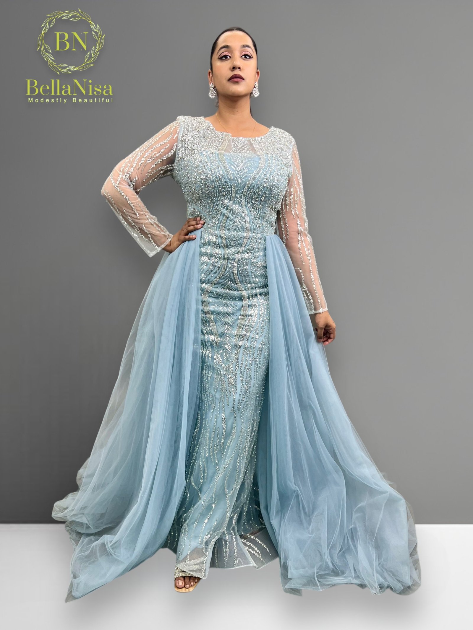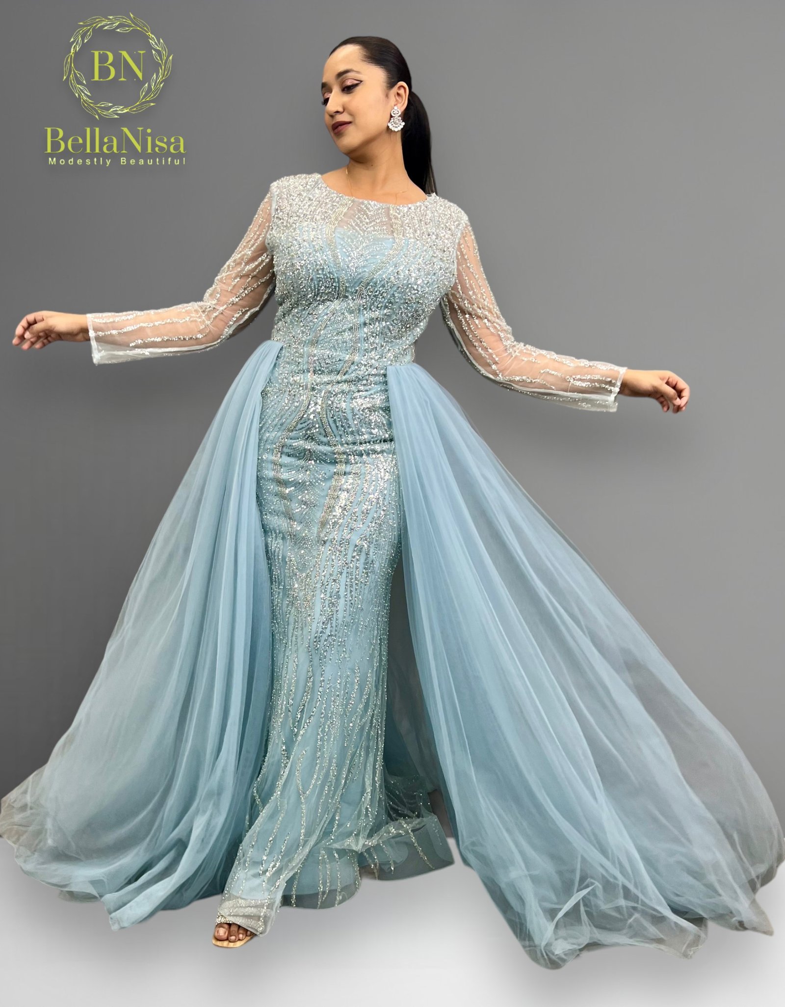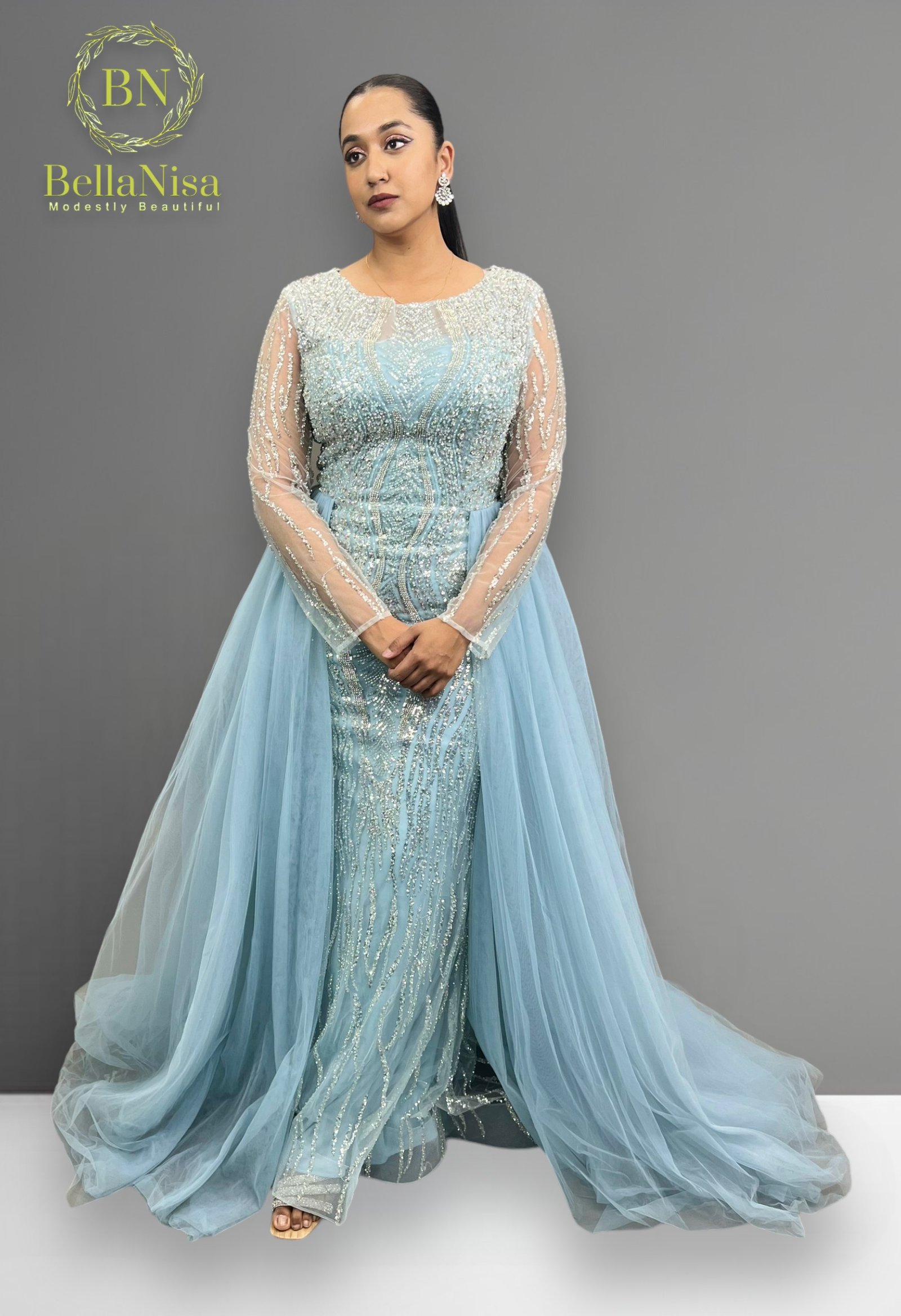 Capture the elegance of a beautiful baby blue gown with this perfect gown! It is fully beaded to mesmerize your audience.