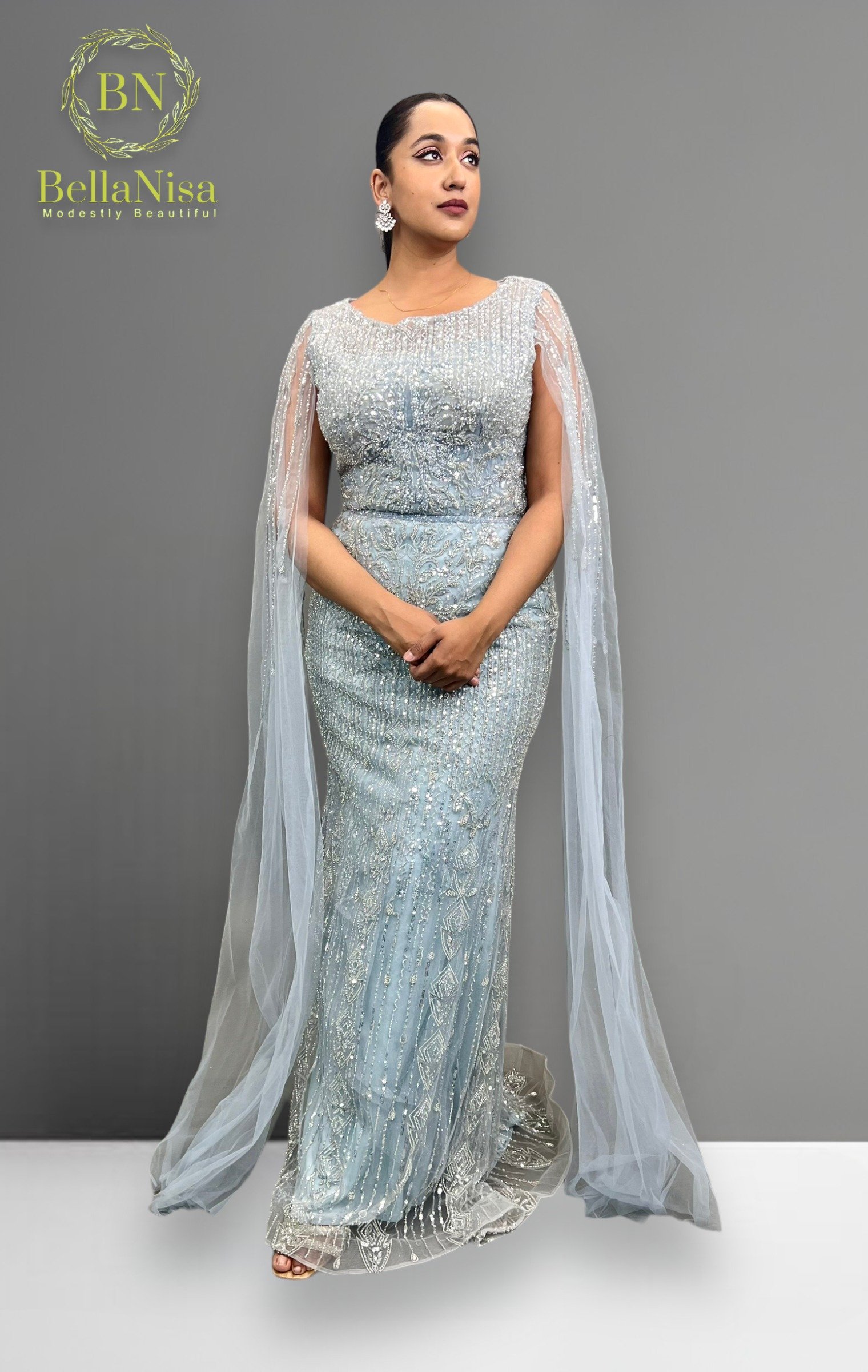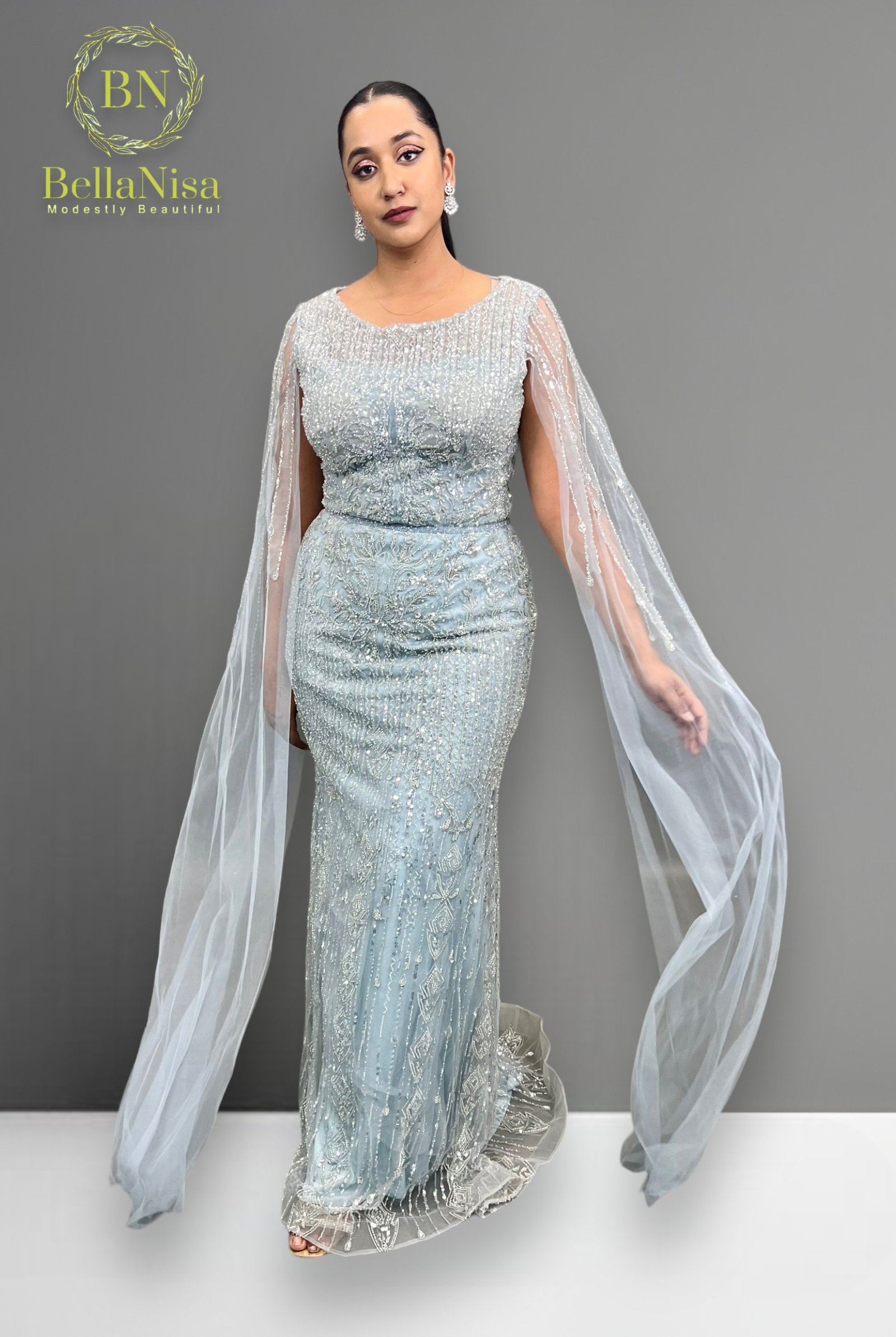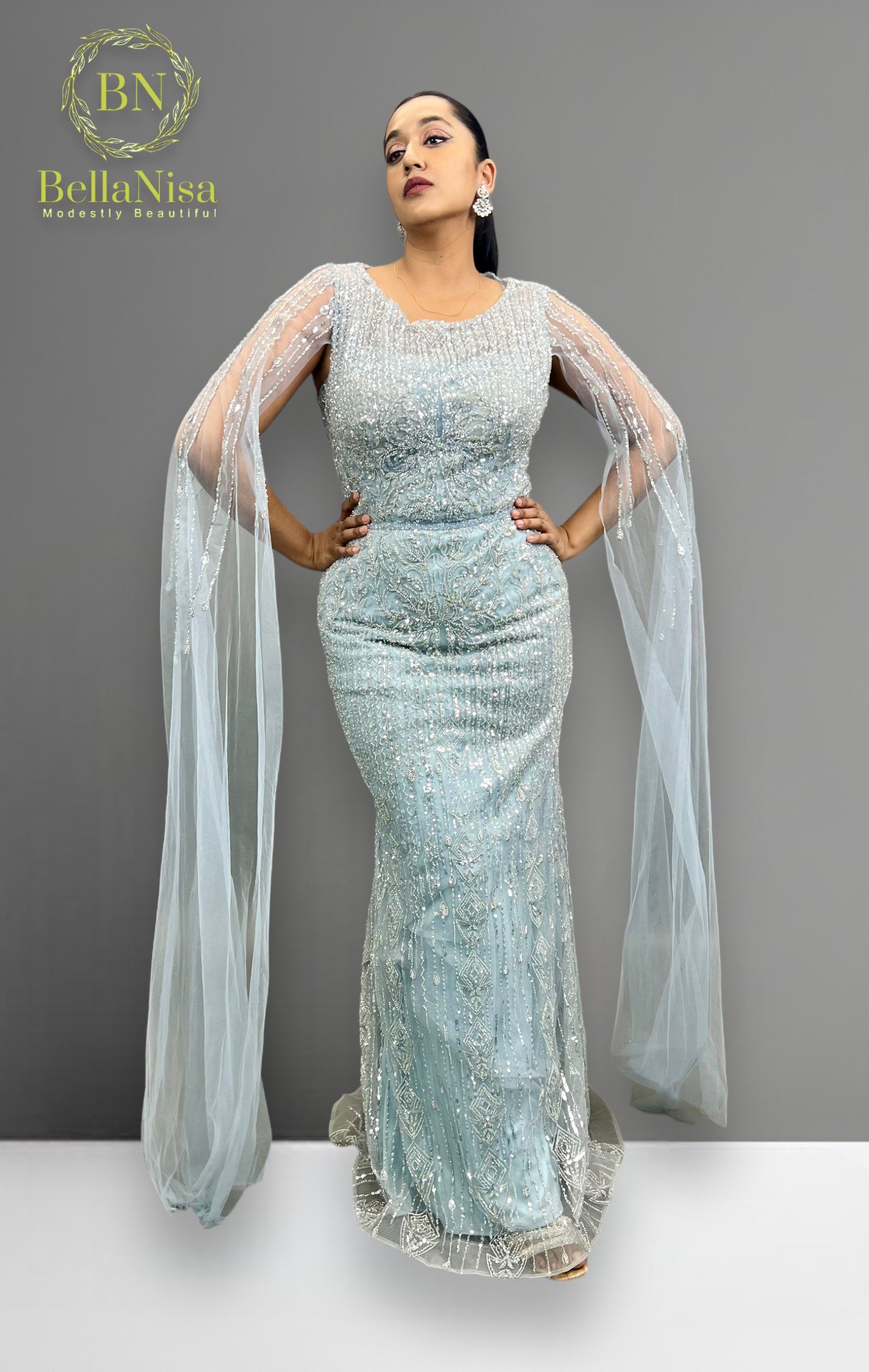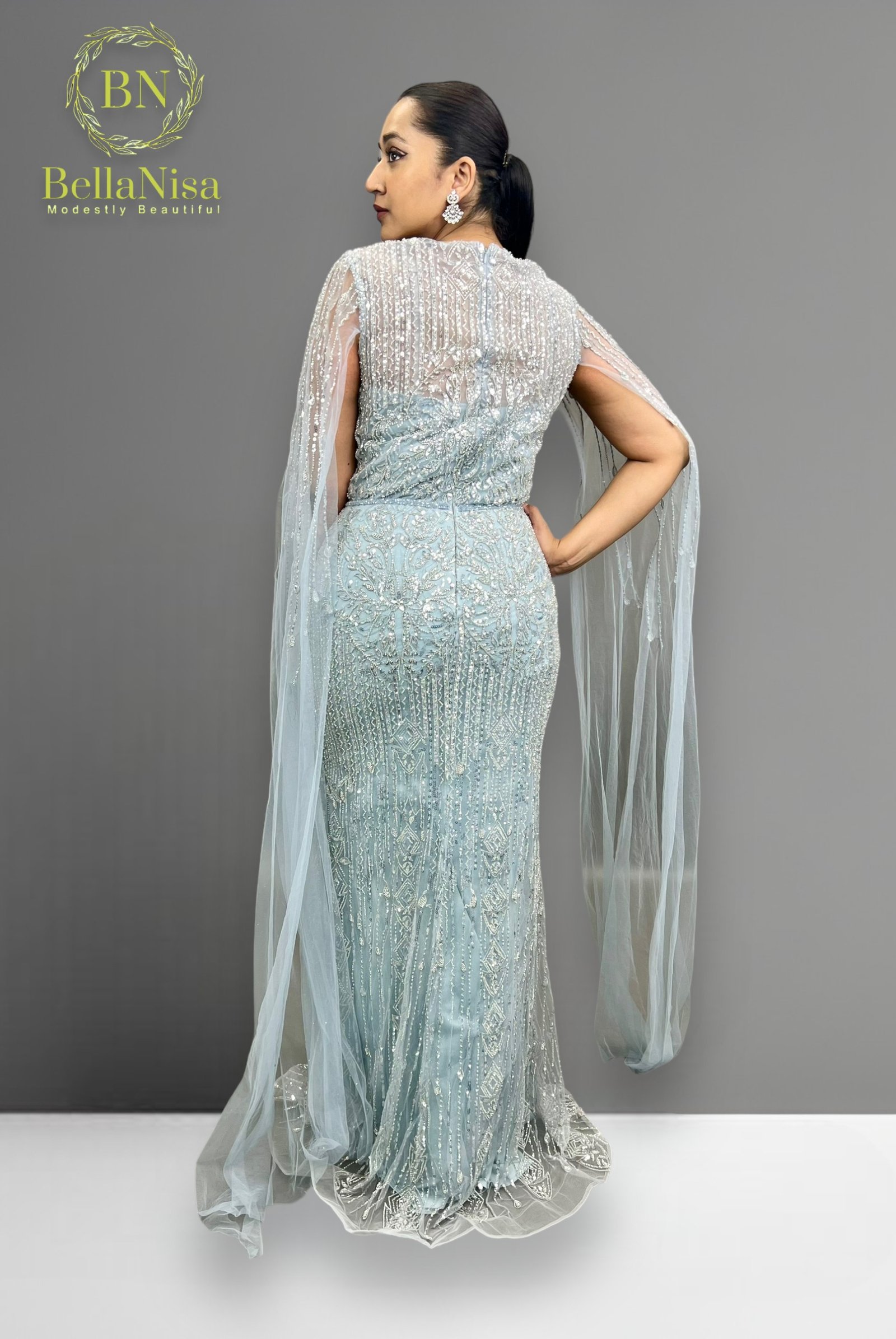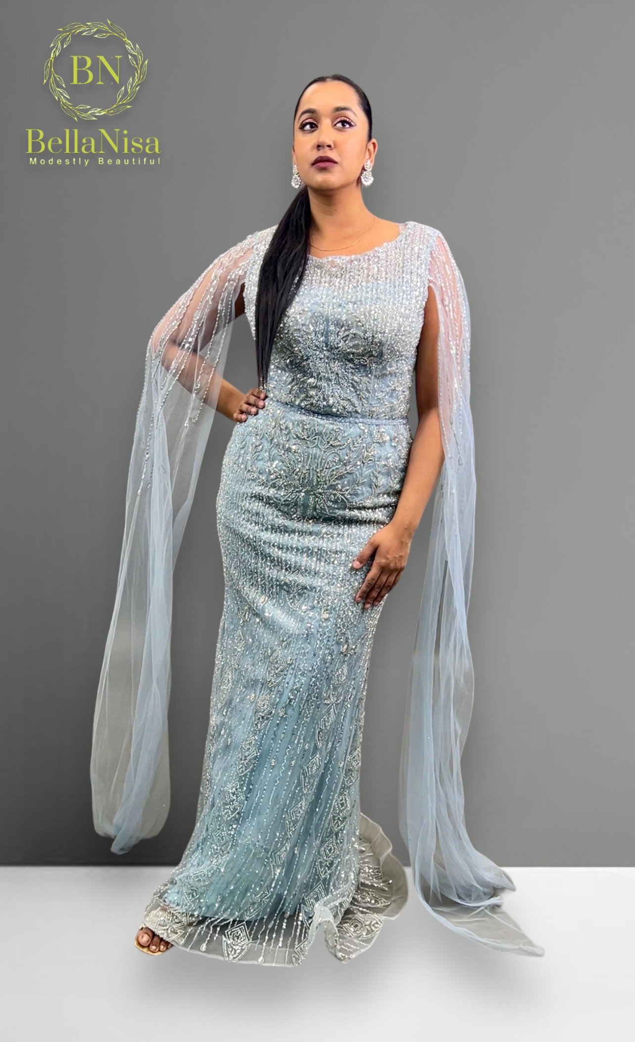 Capture the elegance of a beautiful baby blue gown with this perfect gown! It is fully beaded to mesmerize your audience.